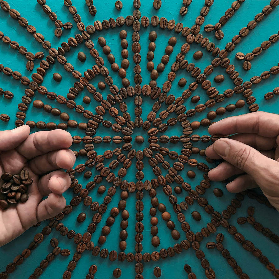 Demaio leverages the symbolic unity and connectivity of the ancient mandala in ‘Coffee Mandala’, a representation of the bonds established between people and societies, like that needed for a New Humanity. This artwork aims to tell a story about patience and attention to detail.