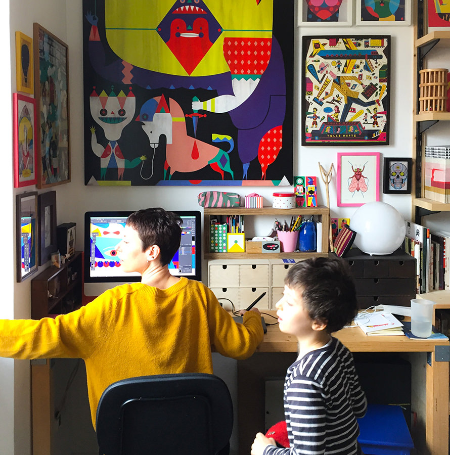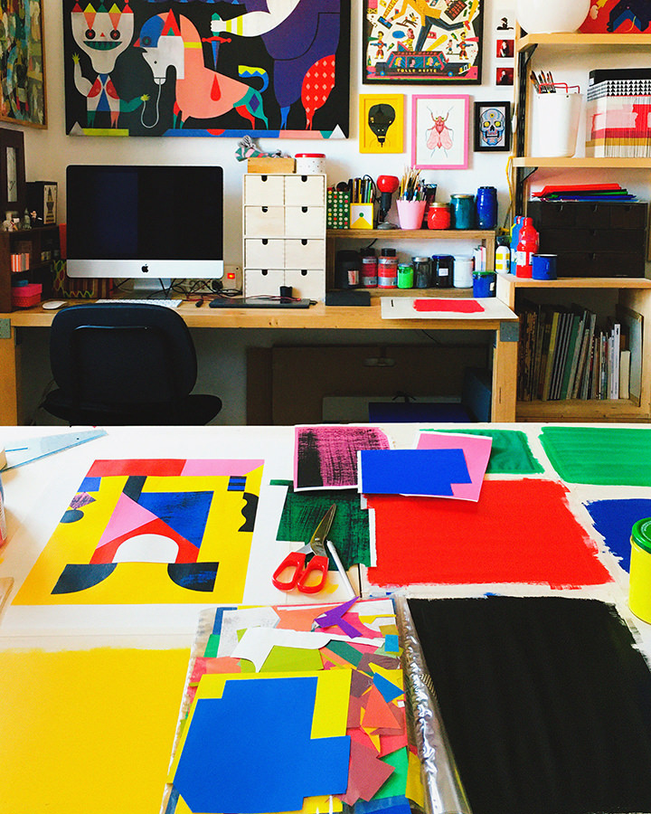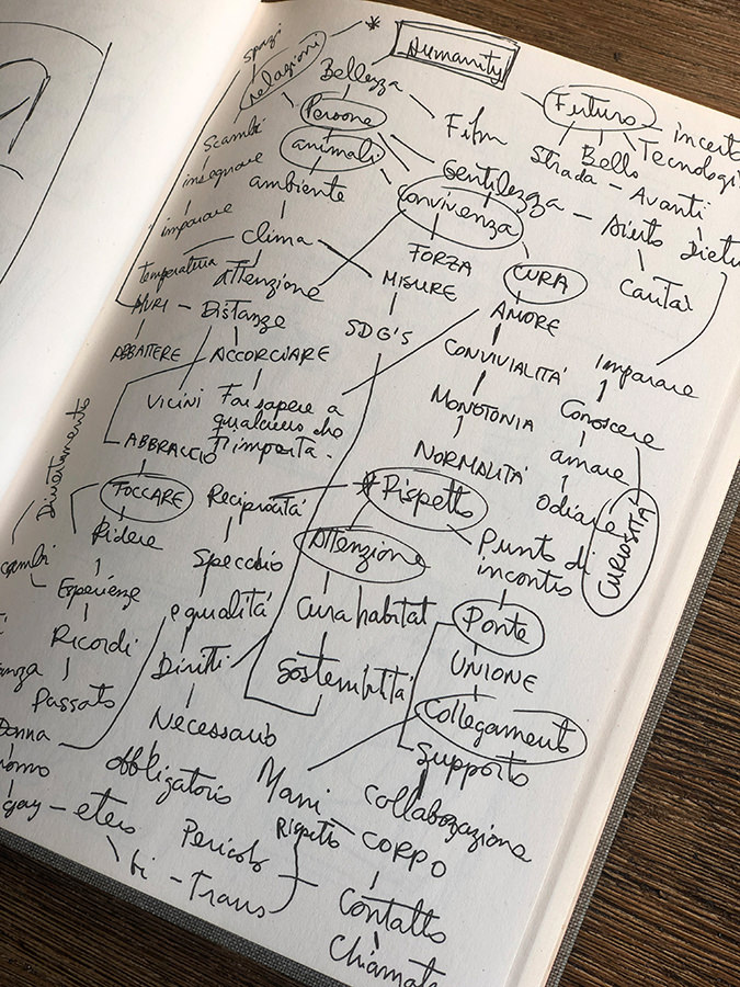 Inside Camilla Falsini’s study: papers, colors and inspirations for The New Humanity project.