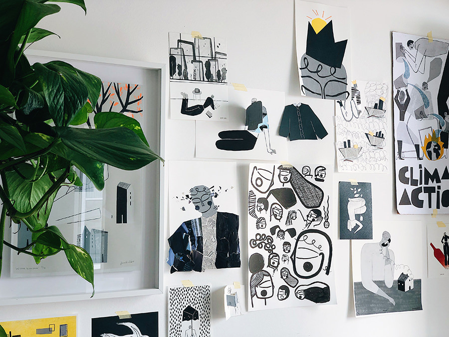 Inside Fernando Cobelo’ study: drawings and inspirations for The New Humanity project.