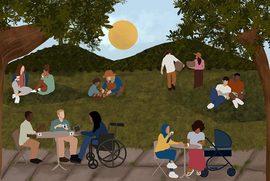 Dandy celebrates the simplicity of local cafes through bright colours that give off a playful and sassy mood unique to her style. For Dandy, places that foster relationships within a community and encourage moments of coming together are the heart of building a New Humanity.
